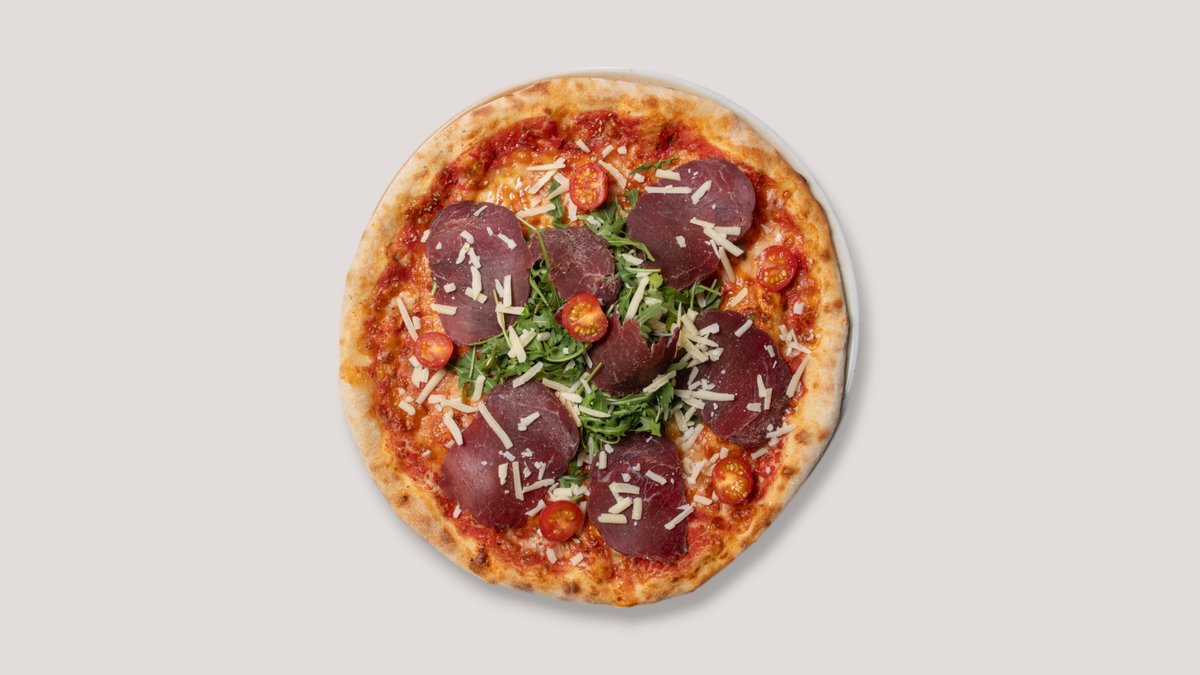mit Rucola, Kirschtomaten, Bresaola (Rinderschinken) und Parmesan
