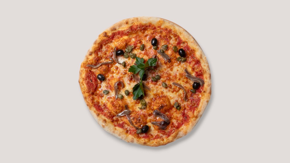 mit Basilikum, Champignons, Artischocken, Schinken und Oliven
