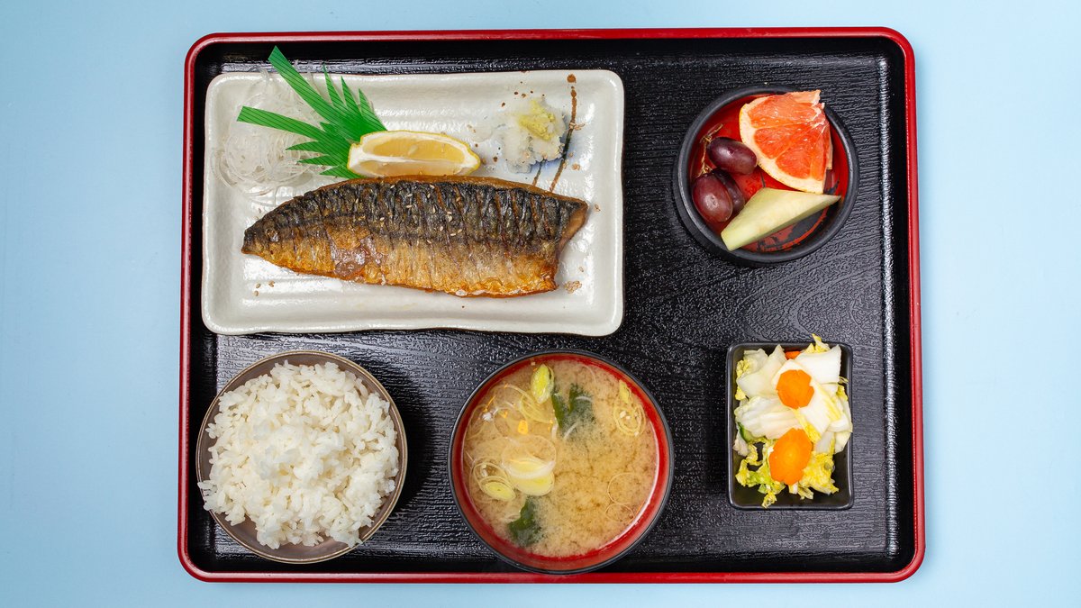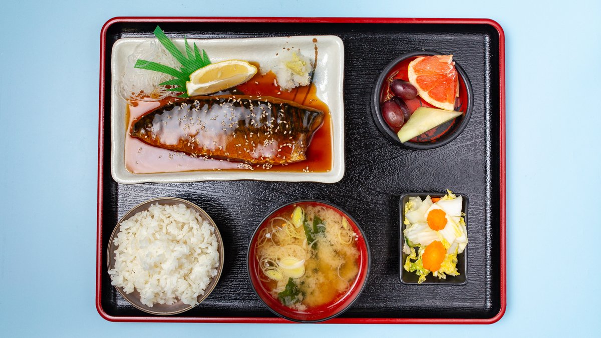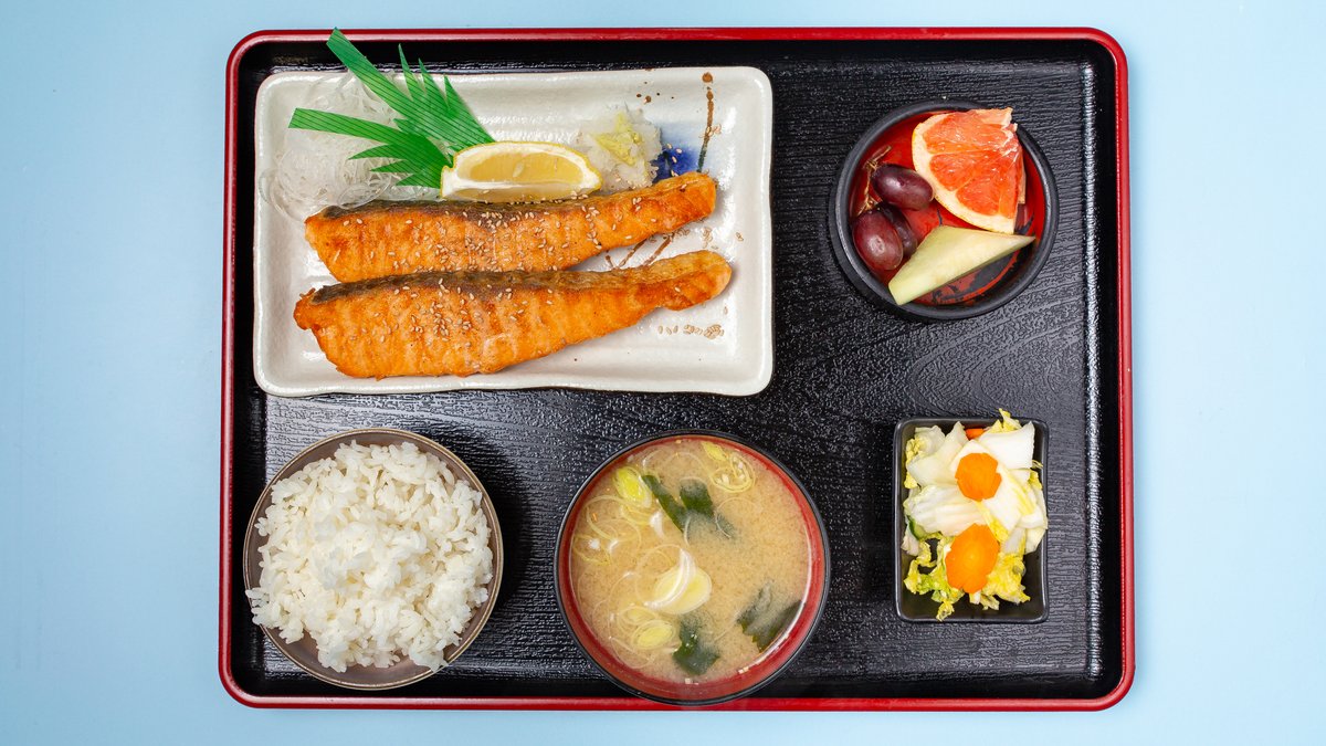 alle Gerichte werden mit Reis, Miso-Suppe, Oshinko und frischem Obst serviert