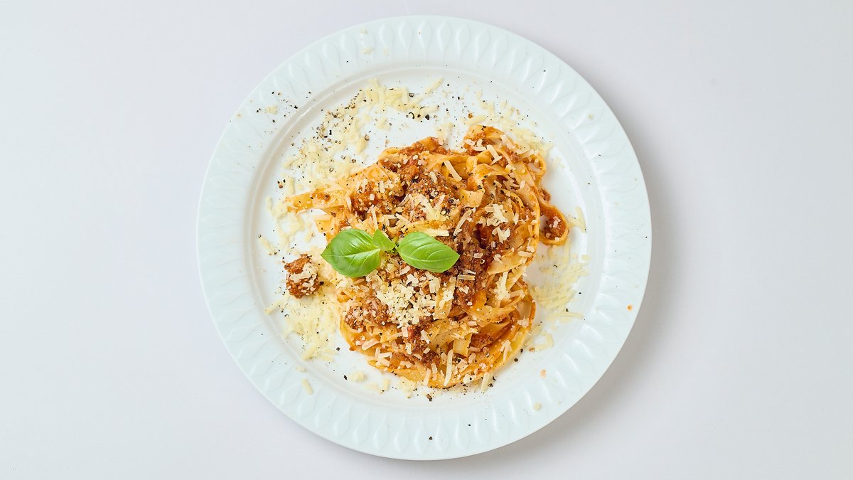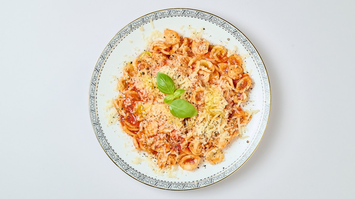 mit Tomatensoße und auf Wunsch auch mit Parmesan