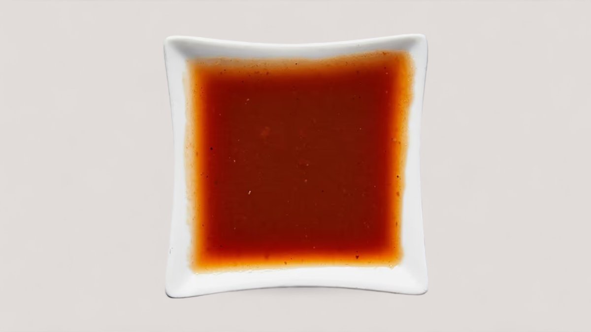Entenfleisch in einer dunklen Sojasoße, Curry, Honig, Kokosmilch und Gewürzen