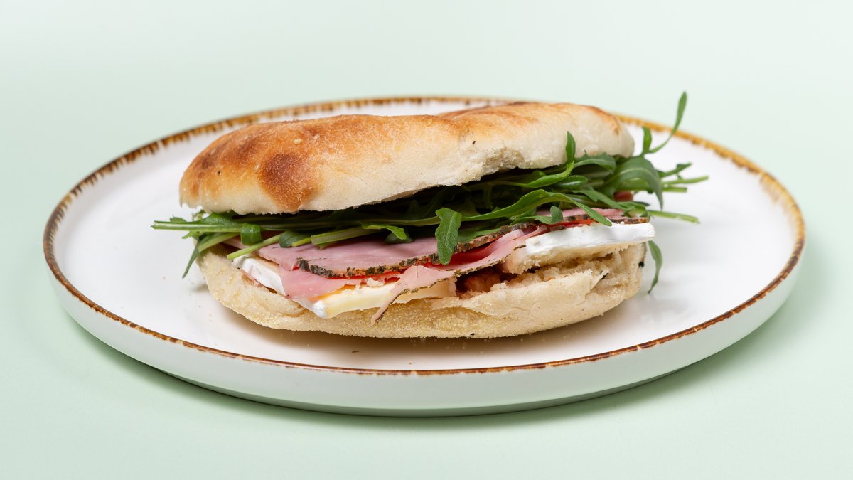 mit Rosmarinschinken vom Schwein, Camembert, Frischkäse und Rucola