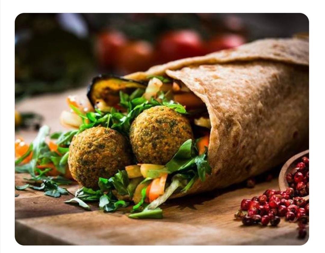Frischer Salatmix mit Eisbergsalat, Tomaten, Zwiebeln, verfeinert mit Olivenöl und Sumak. Dazu gegrilltes Falafel. Leicht, frisch und perfekt für den kleinen Hunger.