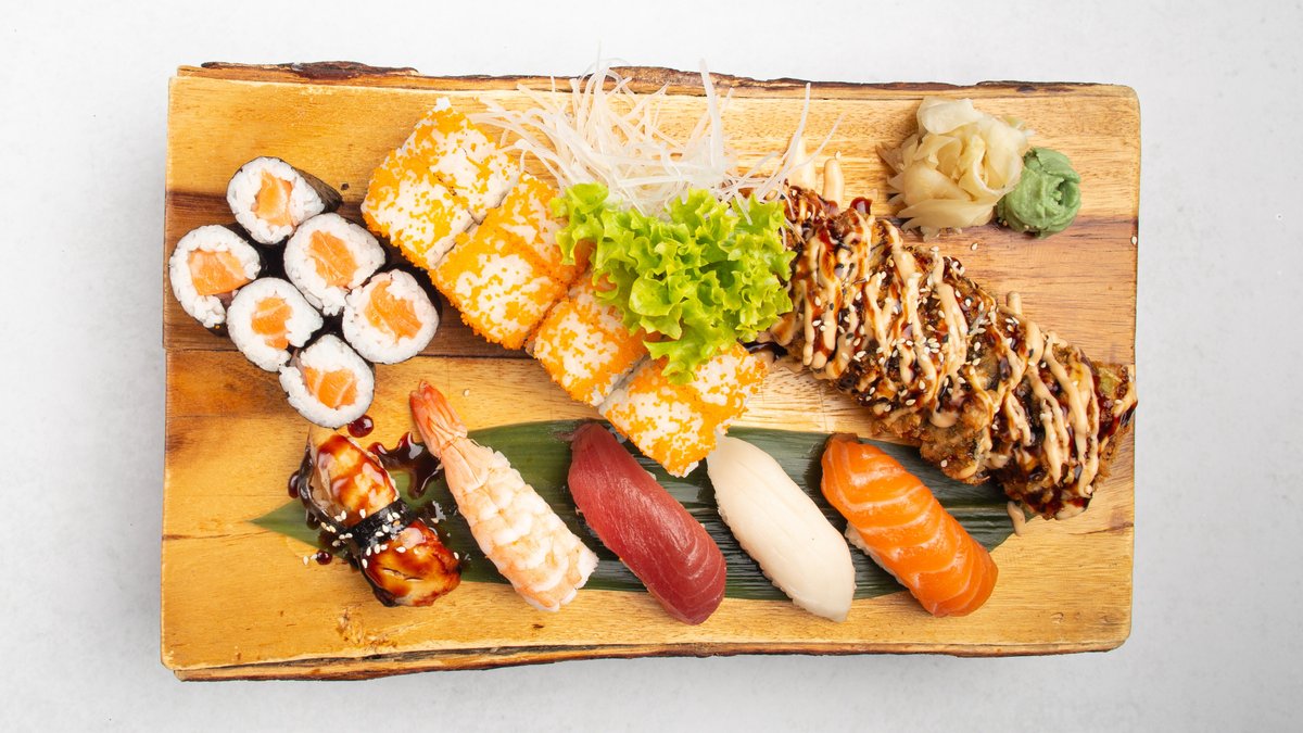 2x Sake Nigiri 2x Maguro Nigiri 2x Ebi Nigiri 6x Sake Maki 6x Avocado Maki 1x Sake Inside Out Roll 6x Fried Roll 1x Salmon Sashimi 4x Sake Yakoolza 8x Chef's Yakoolza 4x White Dragon Roll 4x Ba Long Roll 4x Yellow Submarine