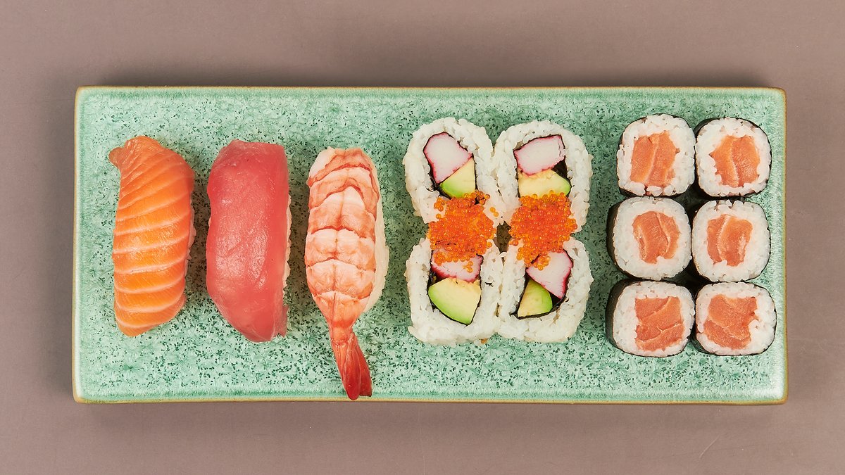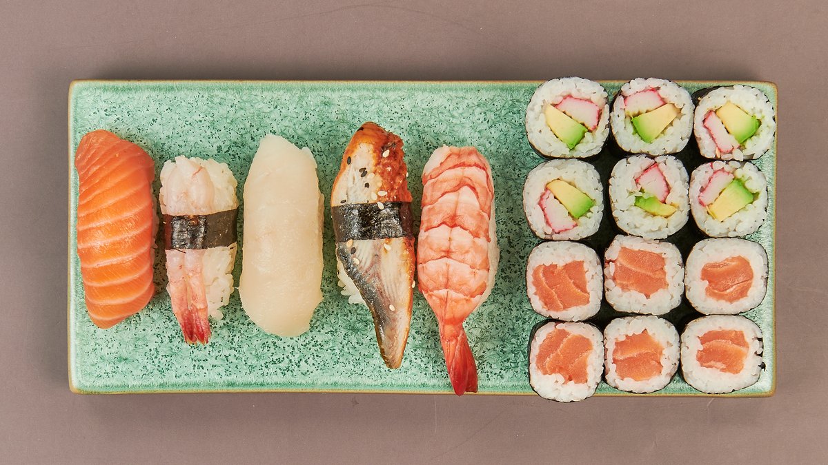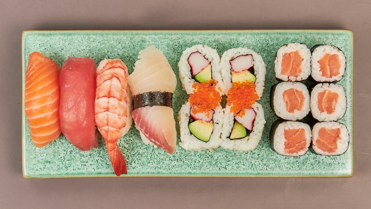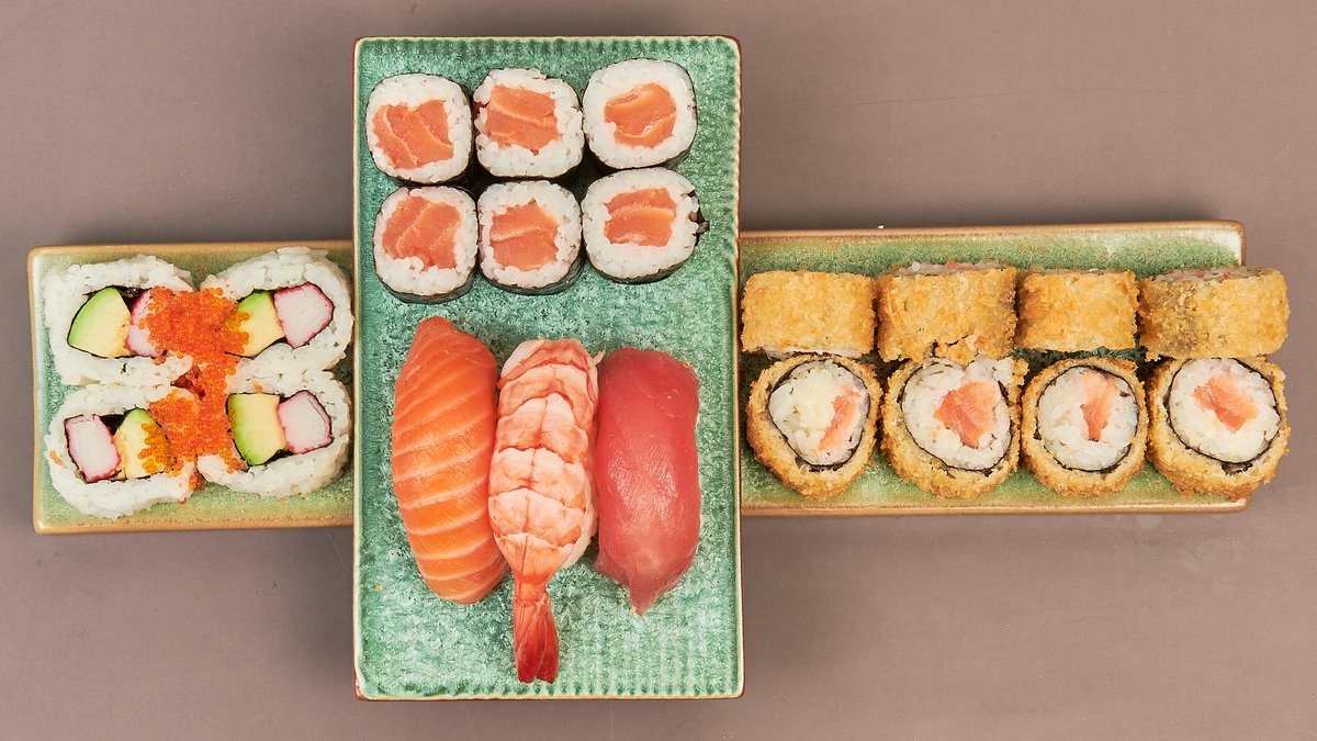 MenĂĽ fĂĽr 4 6x Sake Maki 6x California Maki 6x Avocado Maki 6x Spezial Maki 8x Sake Inside Out 8x California Inside Out 8x Veggie Inside Out 8x Kani Spezial Mini Roll (gebacken) 5x Toronto Big Roll (gebacken) 5x Aiko Big Roll (gebacken) 8x Tiger Roll 8x Nigiri (4 Sake und 4 Maguro)