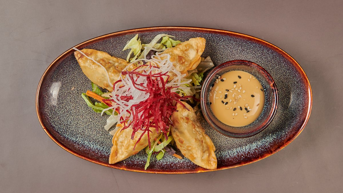 4 StĂĽck gebratene japanische Teigtaschen mit Spezialsoáşže