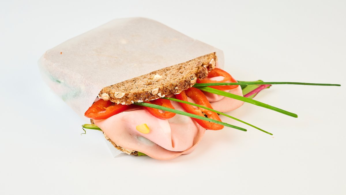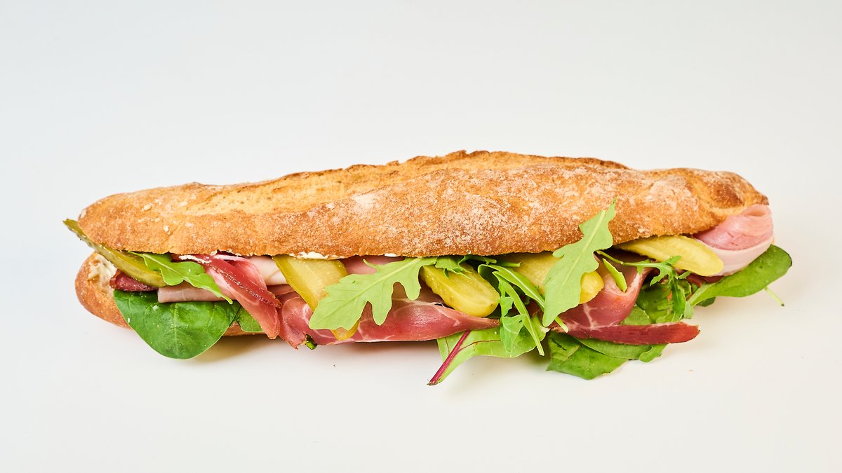 Belegtes Brötchen mit Schwarwalder Schinken und gewürze Gurke