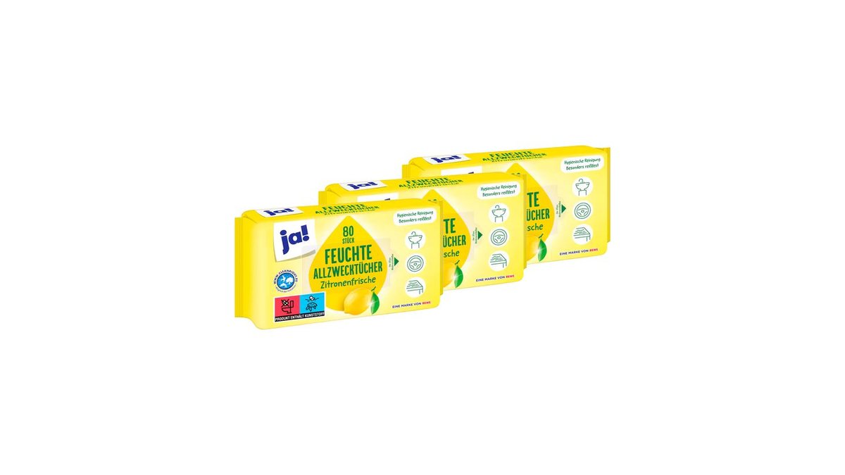 Ja! Feuchte Allzwecktücher Limonen-Frische 80 Stück x3