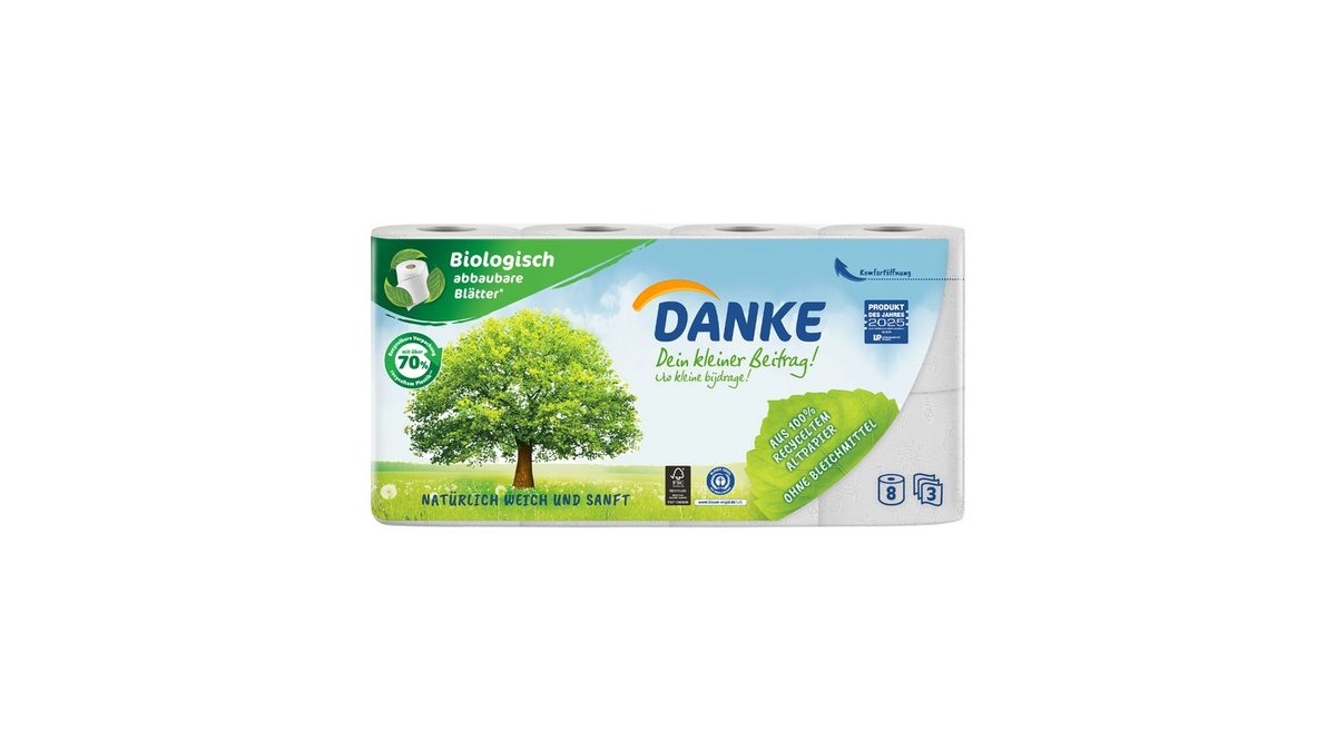 Danke Toilettenpapier 3-lagig 8x150 Blatt