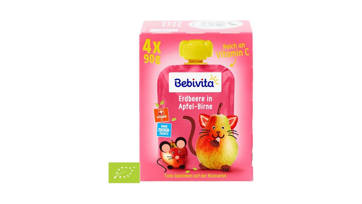Bebivita Quetschie Erdbeere in Apfel und Birne 4x90g