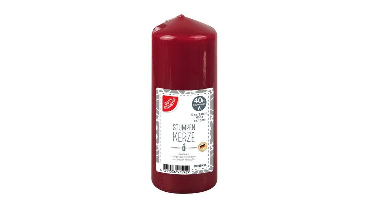 Gut & Günstig Stumpenkerze 150/60 mm Rot, 1 Stück