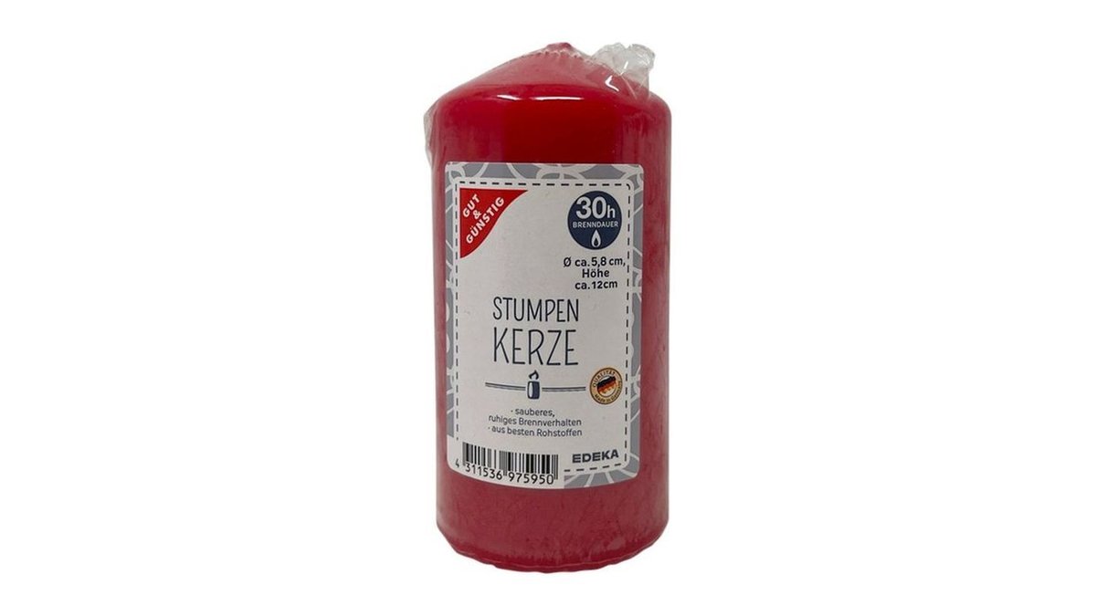 Gut & Günstig Stumpenkerze rot 120/60mm, 1 Stück