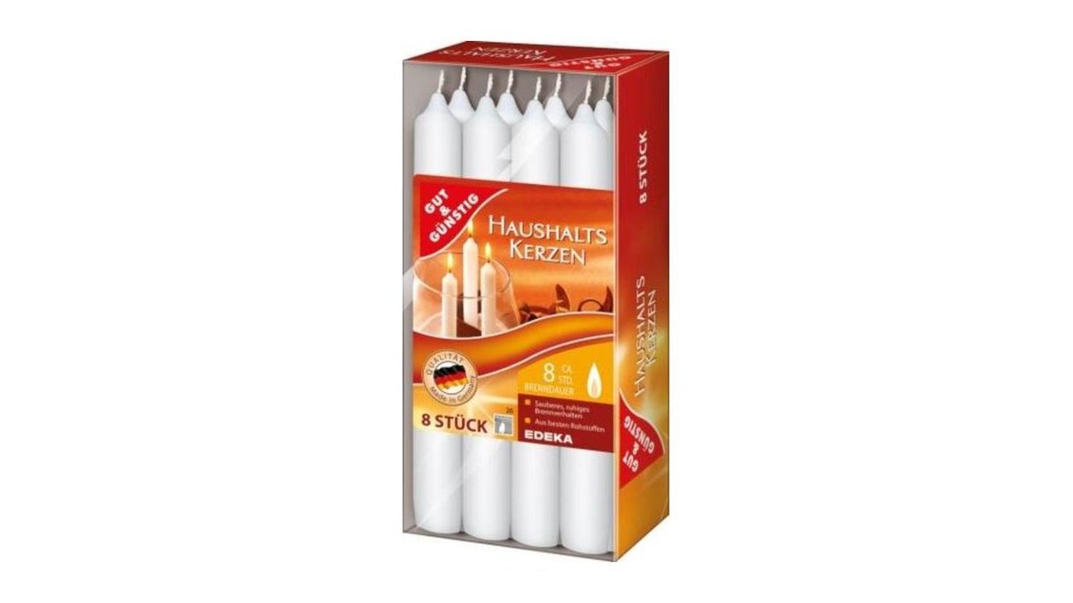 Gut & Günstig Haushaltskerzen Weiss, 8 Stück