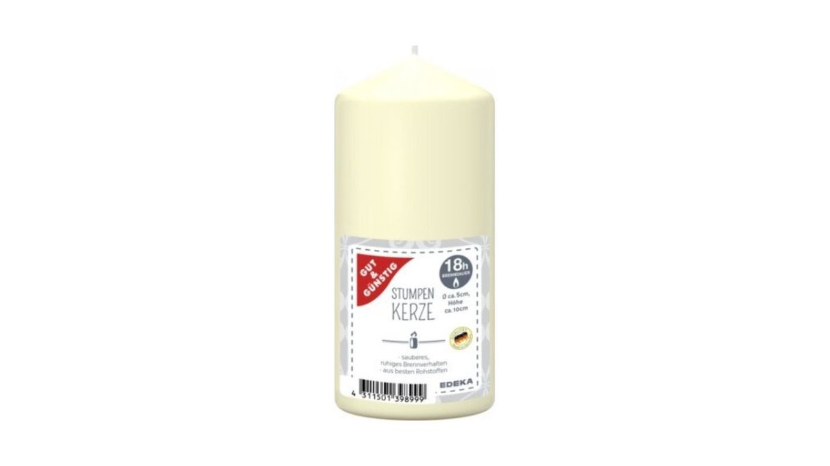 Gut & Günstig Stumpenkerze creme 100/50mm, 1 Stück