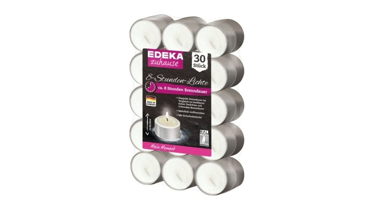 EDEKA zuhause Teelichter Kerzen 8-Stunden-Lichte, 30 Stück