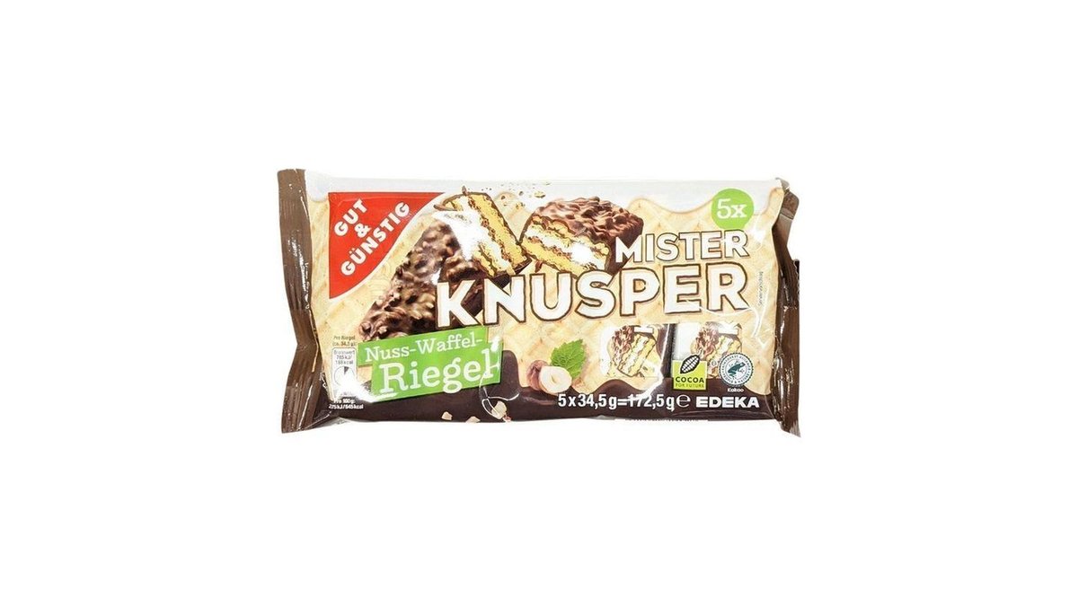 Gut & Günstig Mister Knusper Nuss-Waffel Riegel, 5 x 34,5 g