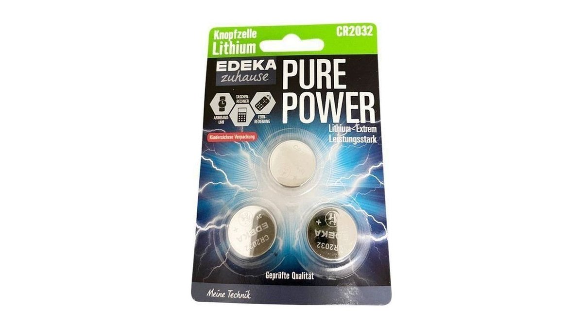 EDEKA Zuhause Pure Power Lithium Knopfzellen CR2032, 3 Stück