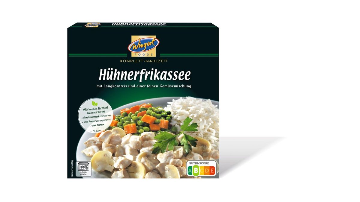 Wingert Foods Hühnerfrikassee mit Erbsen, Möhren, Champignons, Spargel & Reis, 480 g