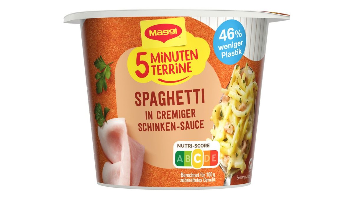 Maggi 5 Minuten Terrine Spaghetti cremige Schinken Sauce, 64 g