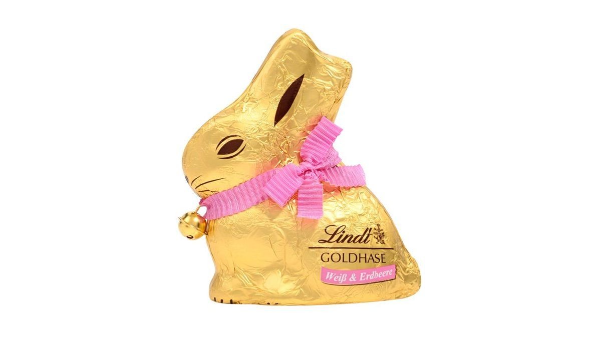 Lindt Schokolade Goldhase Weiss & Erdbeere, 100 g