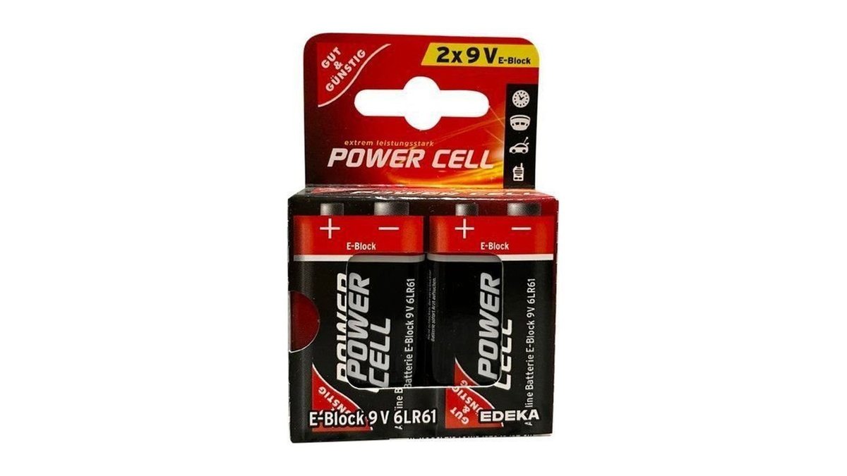 Gut & Günstig Power Cell Alkaline E-Block 6LR61 9V, 2 Stück