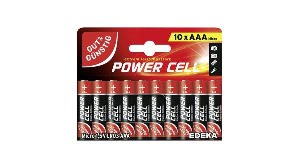 Gut & Günstig Power Cell Alkaline Mignon AAA Batterien, 10 Stück