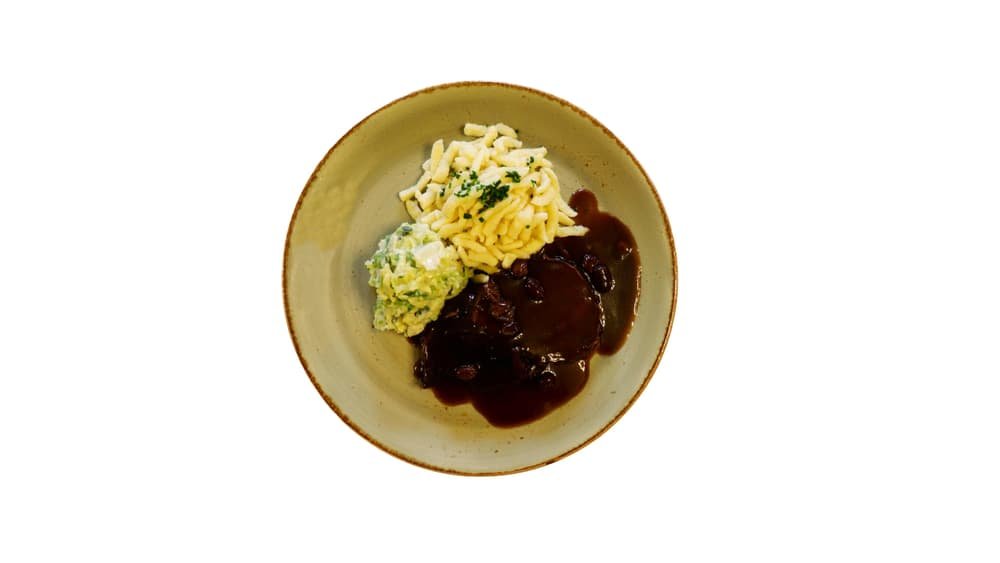 Jolesch Sauerbraten mit Wirsinggemüse in Rahm und Spätzle