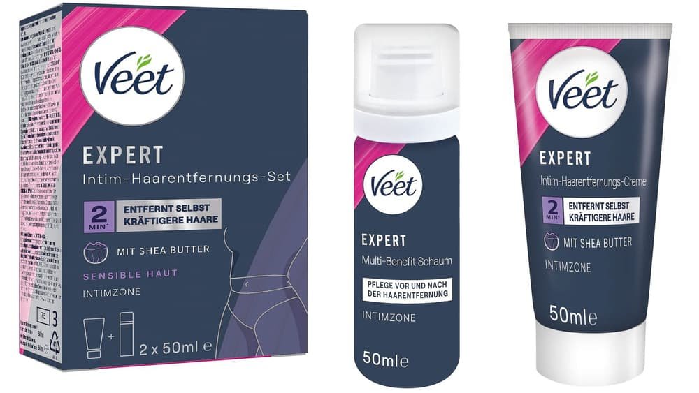Veet EXPERT Intim-Haarentfernungs-Set, Intim-Haarentfernungscreme + Multi-Benefit Schaum