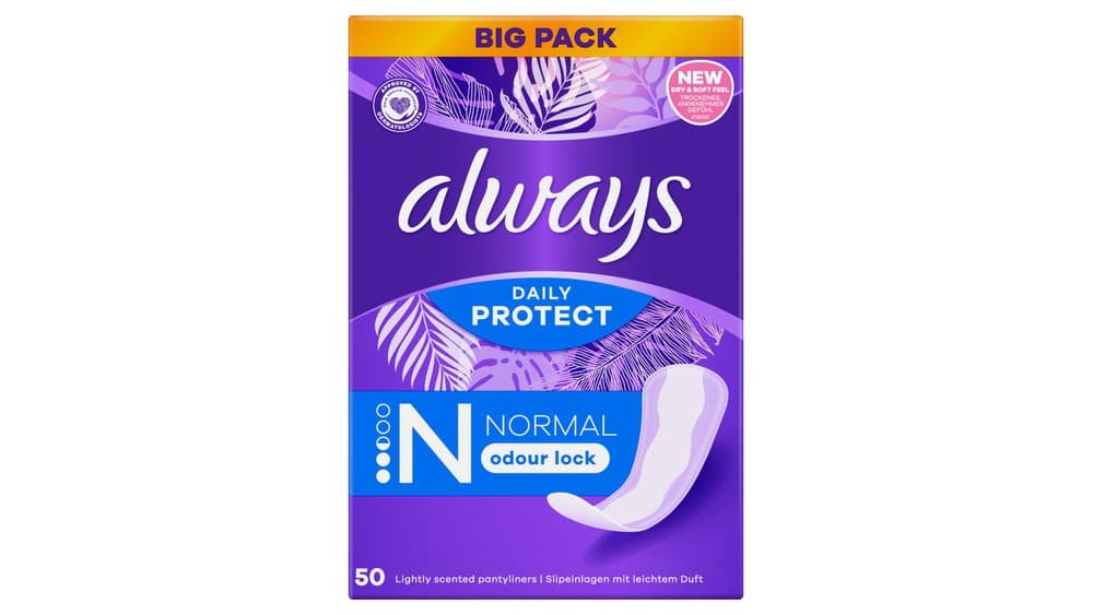 Always Daily Fresh Slipeinlagen Normal, mit 100 % pflanzenbasierten Fasern, 42 Stück, ohne Duft