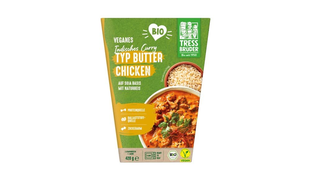 TressBrüder BIO Curry Typ Butter Chicken auf Soja-Basis mit Naturreis VEGAN