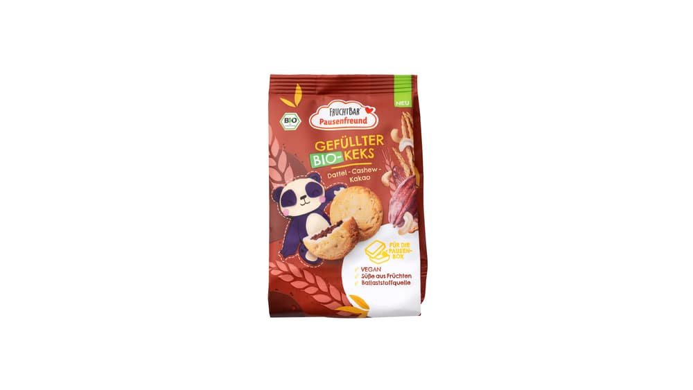 FruchtBar Pausenfreund – Gefüllter Bio-Keks Dattel, Cashew, Kakao
