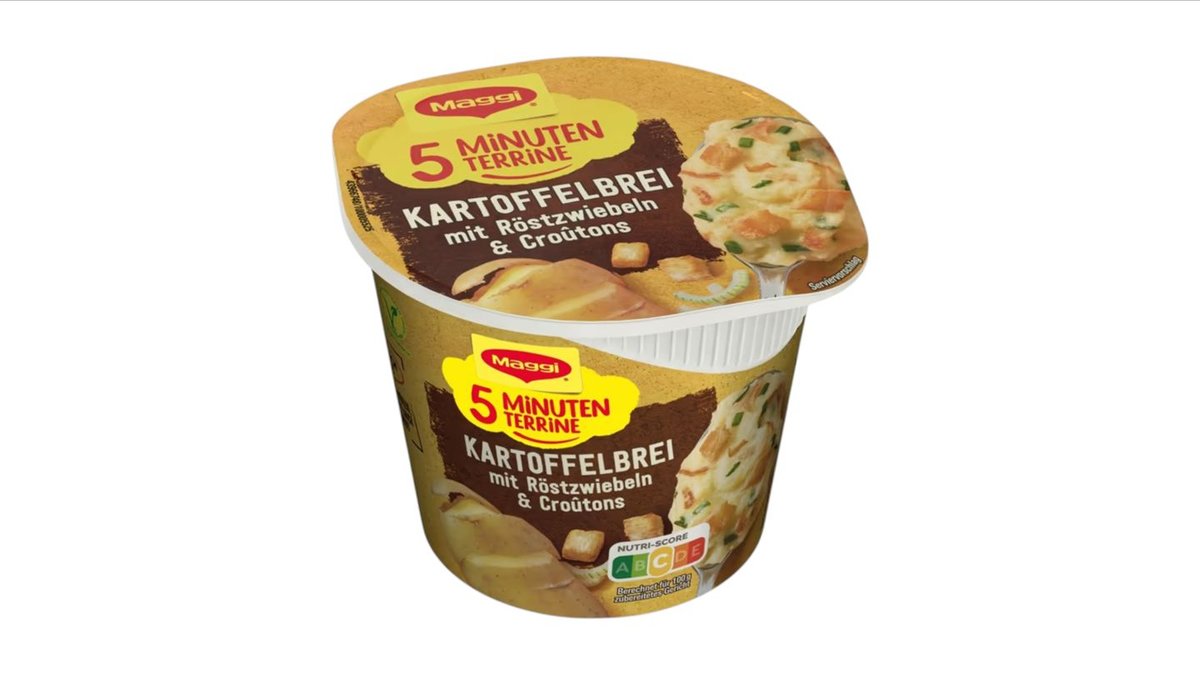 Maggi 5 Minuten Terrine Kartoffelbrei mit Röstzwiebeln & Croutons, 56 g
