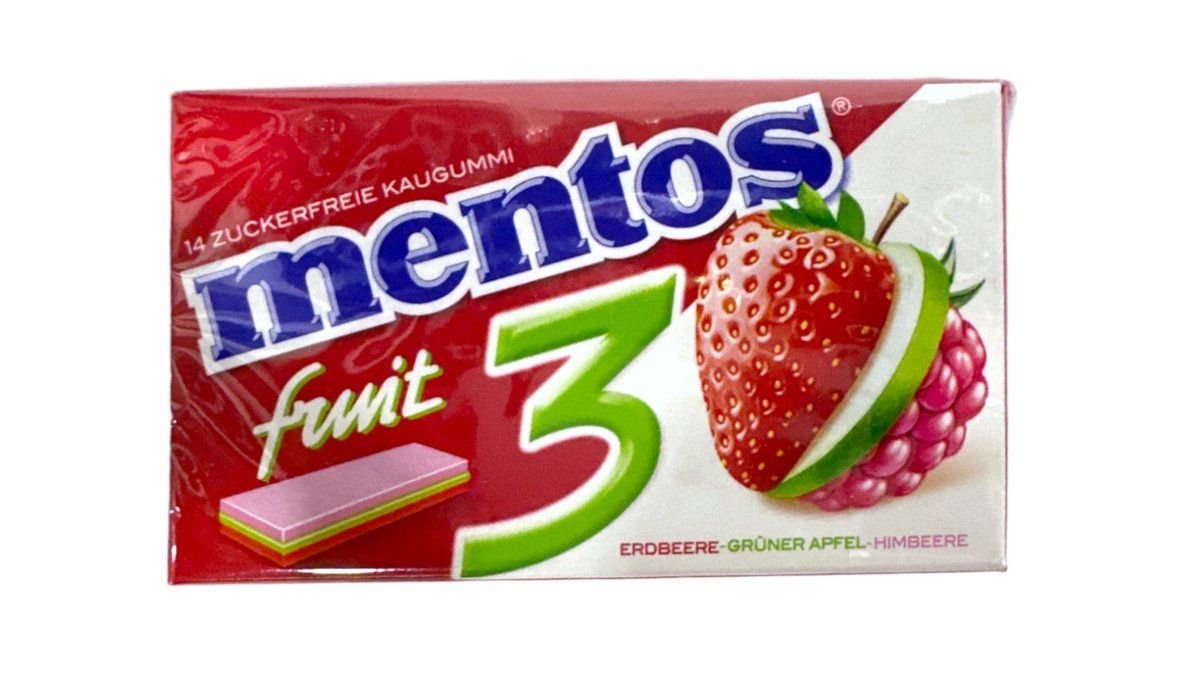 Mentos Kaugummi Mints Erdbeere Grüner-Apfel Himbeere, 33 g