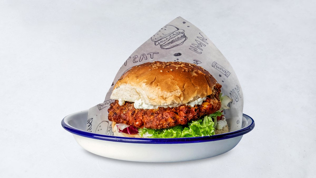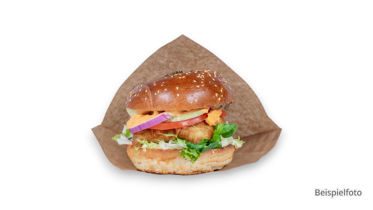 alle Burger werden mit Tomaten, Gurken, Zwiebeln und Eisbergsalat zubereitet („Crispy Chicken Burger” wird ohne Gurken zubereitet)