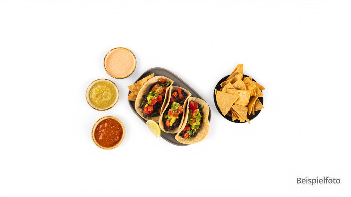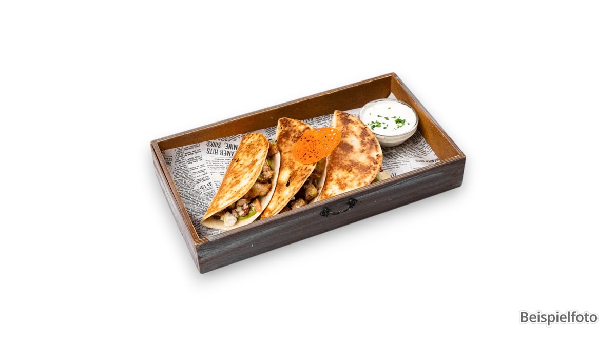 alle Tacos werden mit Käse zubereitet und mit Pommes frites und einer Soße deiner Wahl serviert