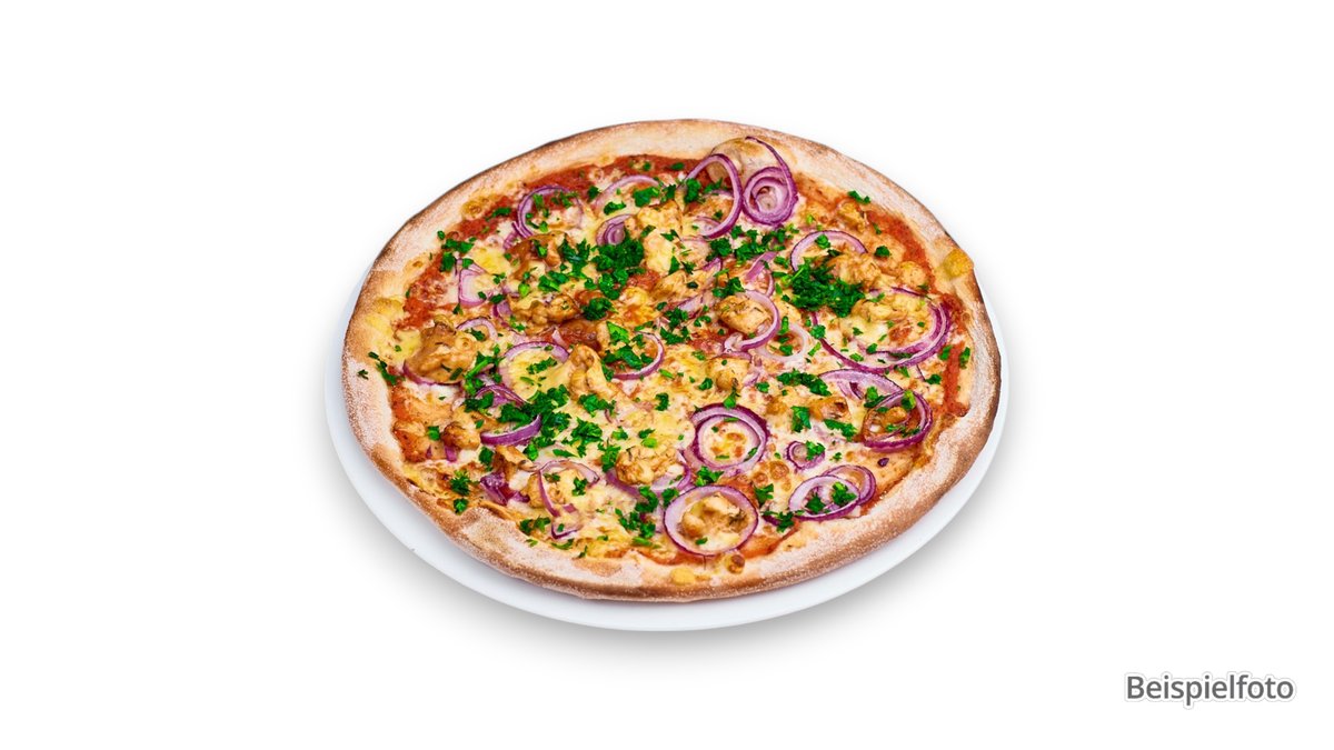 mit Hähnchen, Speck, roten Zwiebeln und Barbecuesoße