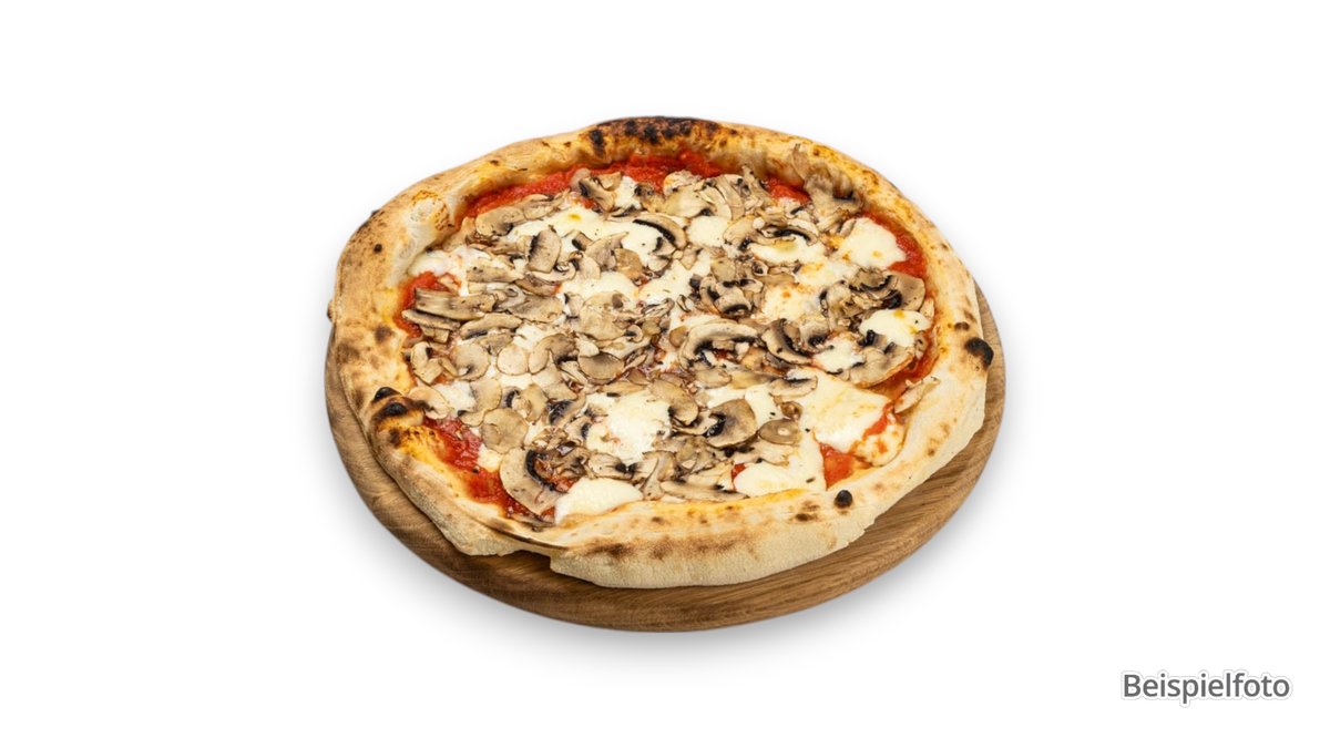 alle Pizzen werden mit Tomatensoße und Käse zubereitet und in einer Größe deiner Wahl serviert