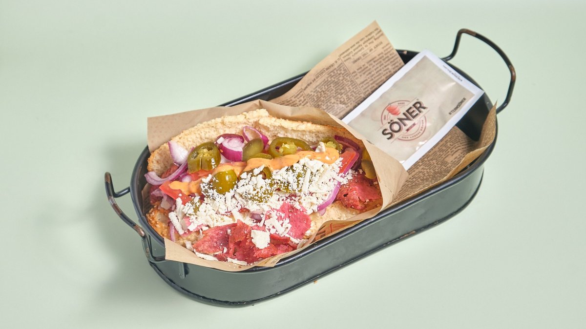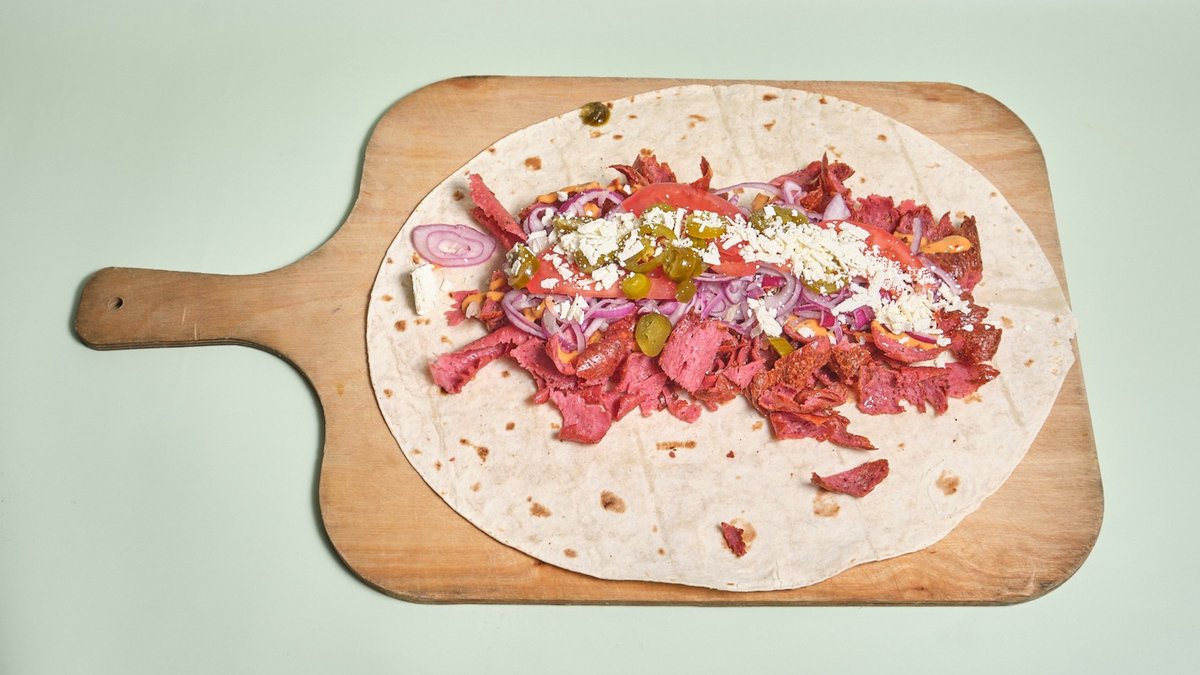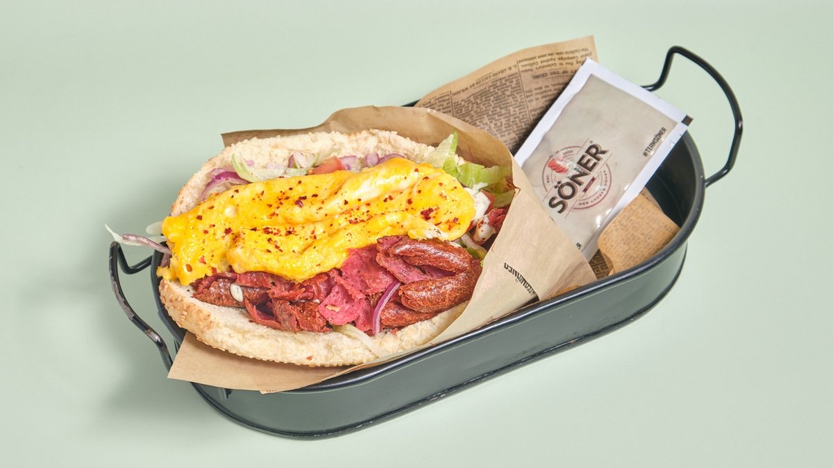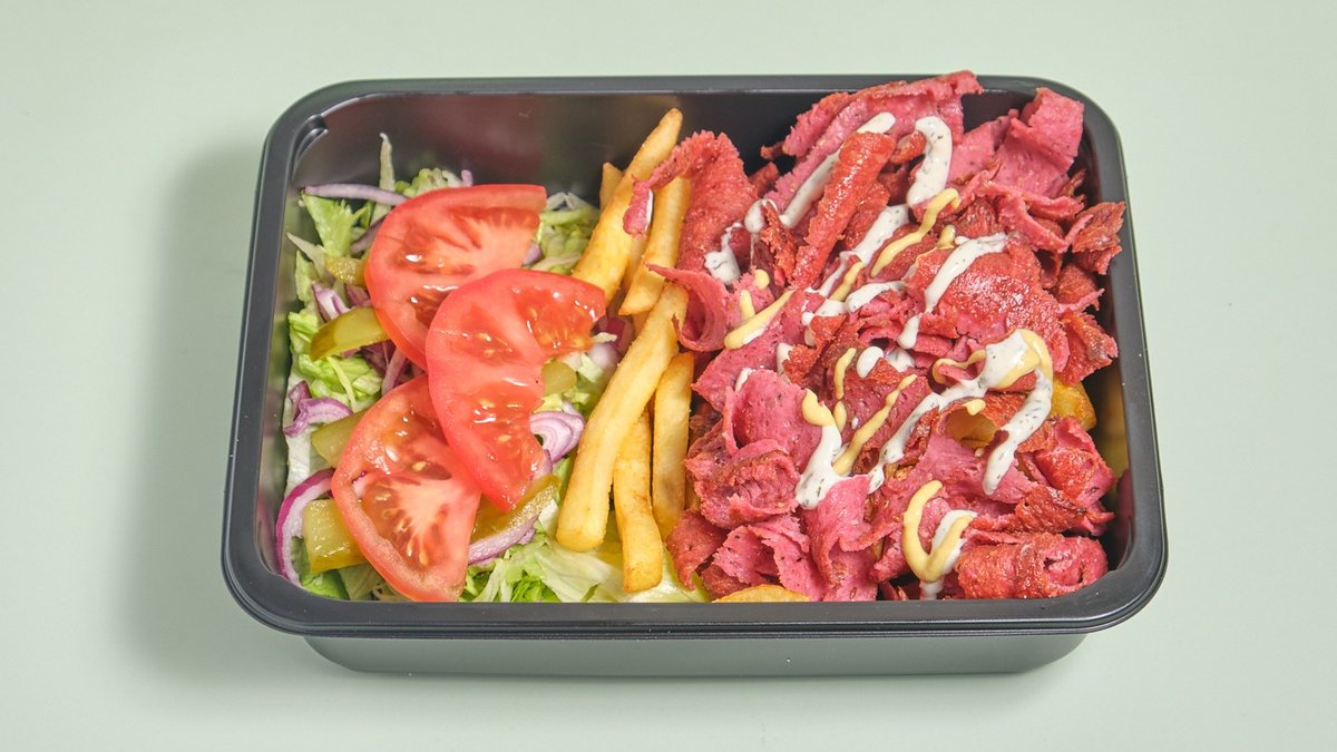 alle Gerichte werden mit Sucuk-Dönerfleisch vom Rind, Eisbergsalat, Tomaten, Zwiebeln und einer Soße deiner Wahl zubereitet („5. Hähnchen-Gemüse-Kebab” wird ohne Sucuk-Dönerfleisch vom Rind, Eisbergsalat, Tomaten, Zwiebeln und einer Soße deiner Wahl zubereitet und „11. Eggy-Sürüm” wird ohne Tomaten zubereitet)