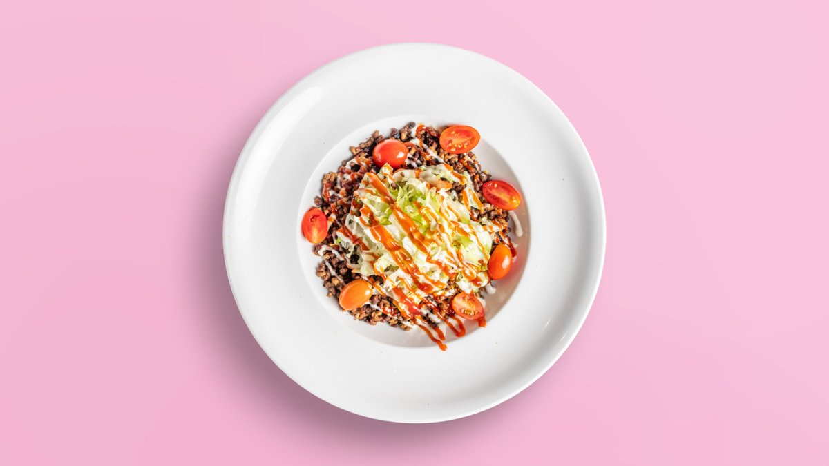 knackiger Salat, getoppt mit saftigem Pulled-Chicken, krossen Twister Fries, herzhafter Barbecuesoße, Joghurt-Dressing, Parmesan und Kirschtomaten