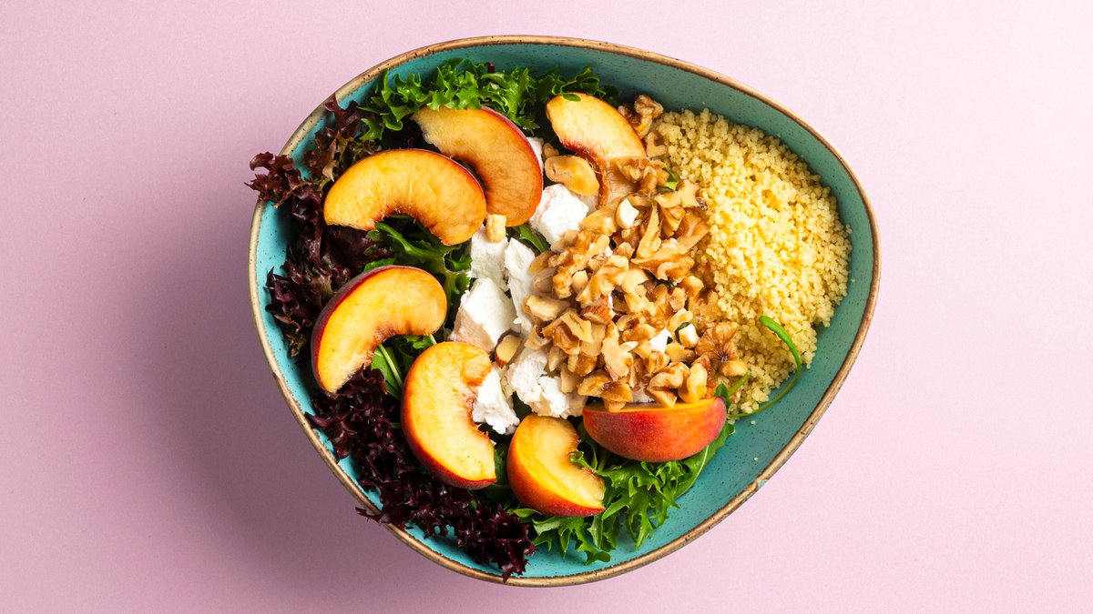 alle Bowls werden mit frischem Grünzeug der Saison und Couscous serviert