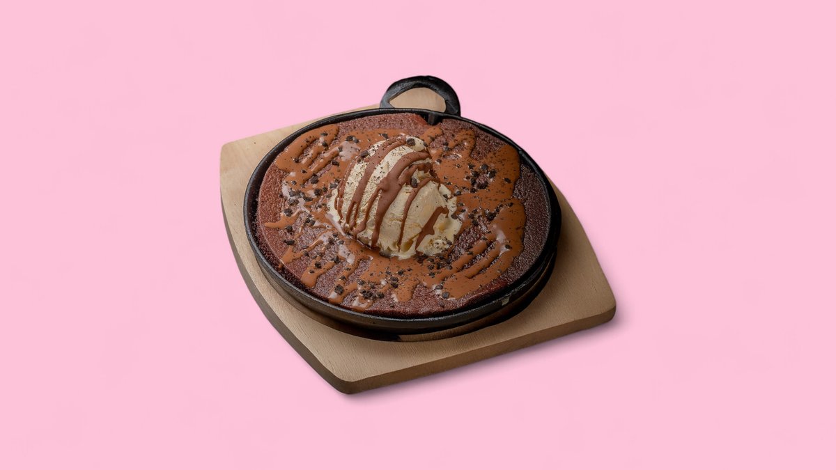 unser Signature Brownie verfeinert mit Lotus-Biskuitstücken und Karamellgeschmack