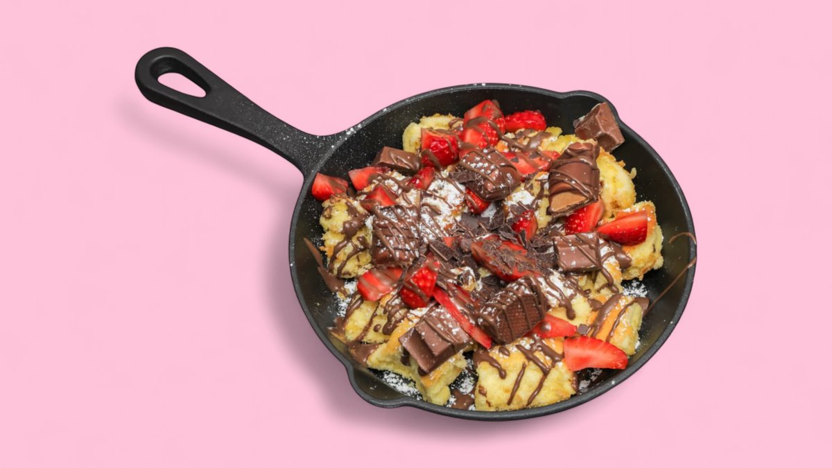 Kaiserschmarrn, Frische Erdbeeren, Oreo Streusel, weiße Schokolade und Puderzucker