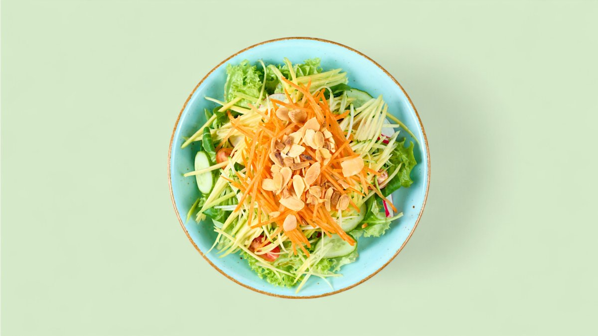 alle Gerichte werden mit Chia-Samen und grünem Salat zubereitet („62. Tofu Salat" wird ohne Chia-Samen zubereitet)