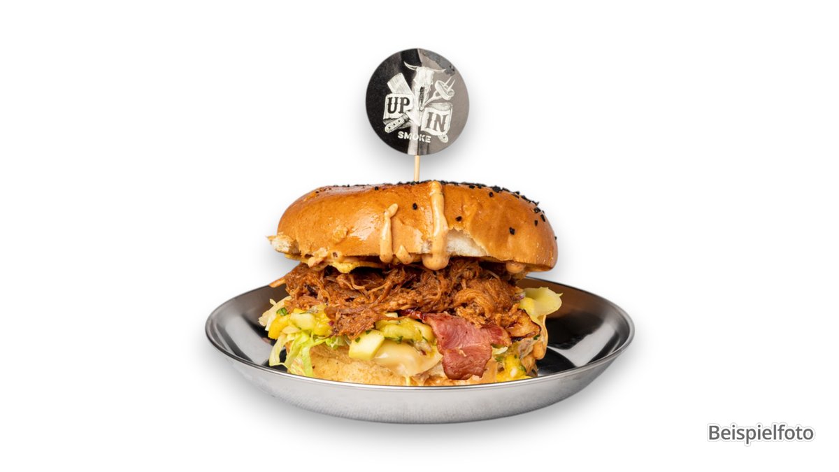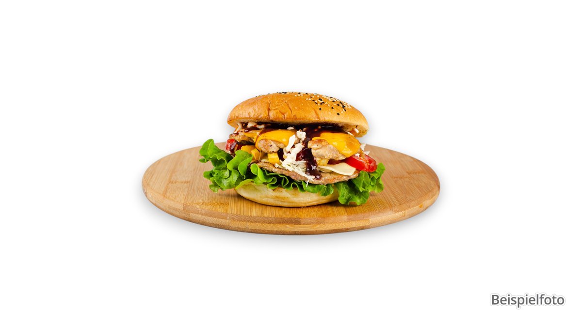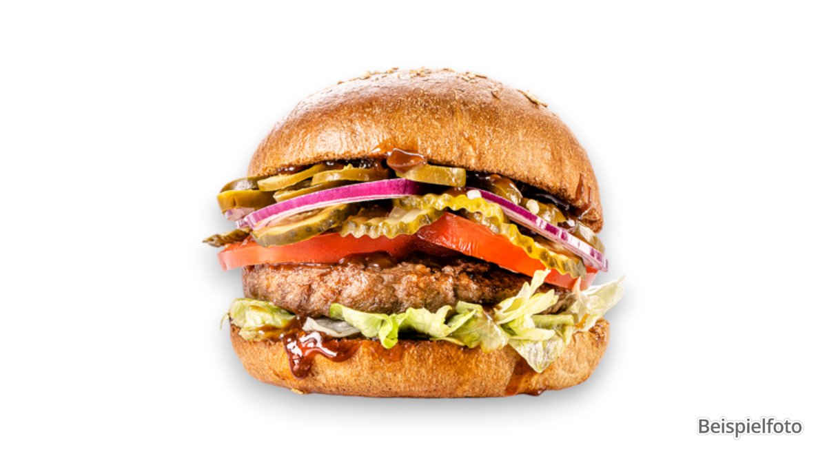 alle Burger werden mit hausgemachtem 180 g Rinfleischpatty, Tomaten, Soße aus regionalen Zutaten und einem Brot deiner Wahl zubereitet („The Teriyaki Chicken Burger”, „The Veggie Burger” und „Crispy Chicken Burger” werden ohne 180 g Rinfleischpatty zubereitet)