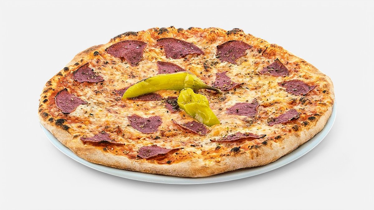 mit Tomatensoße, Käse, Putensalami und milder Chili-Paprika