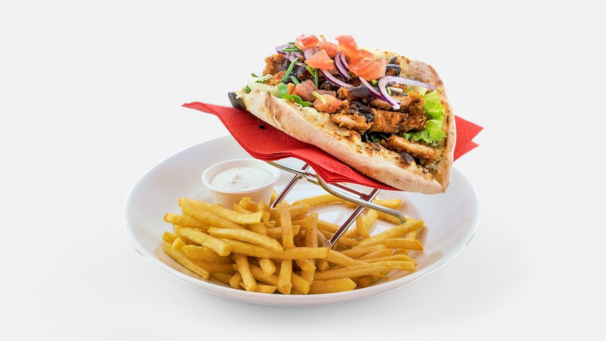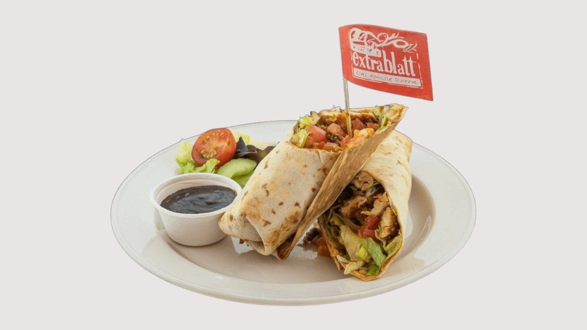 alle Gerichte werden mit einem Deko-Salat, einer Beilage, einer Fleischsorte und einem Dip deiner Wahl serviert