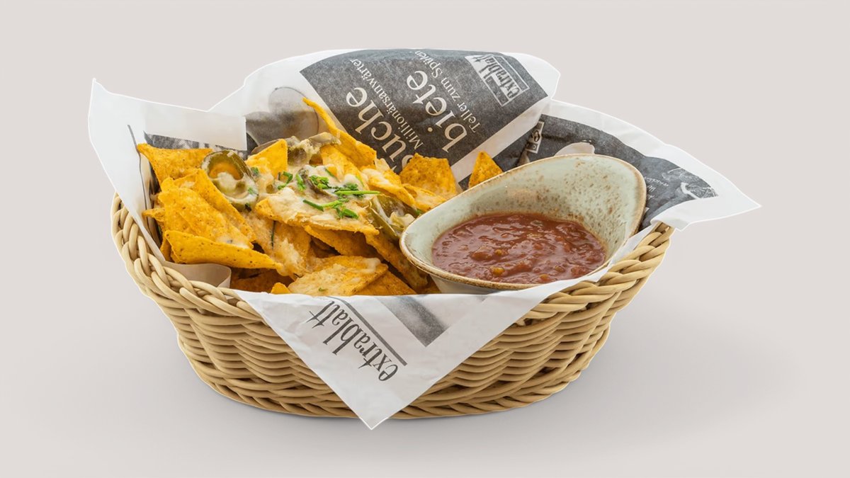 mit Salsa, Jalapeños-Käse-Dip und einer Zutat deiner Wahl