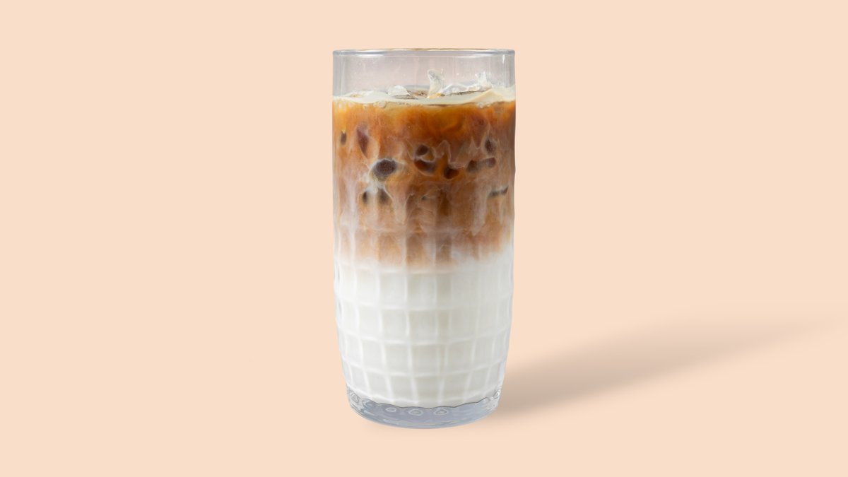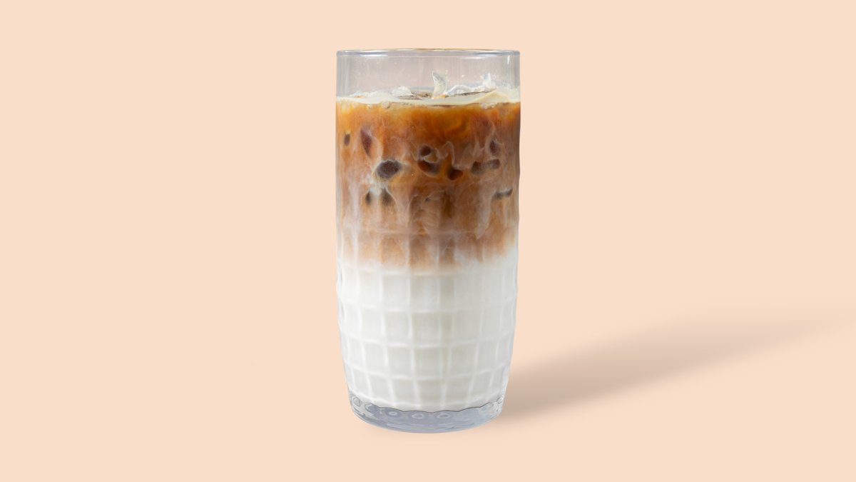 Latte Macchiato, serviert auf Eis.