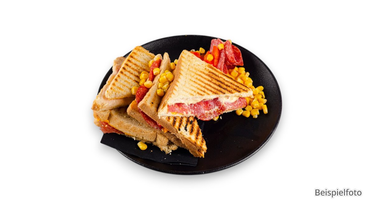 alle Toasts werden mit verschiedenen Kräutern und Scheibenkäse zubereitet und in einer Größe deiner Wahl serviert („21. Vegetarian Toast“, „23. Avocado Toast“ und „24. Avocado-Mozzarella Toast“ werden ohne Scheibenkäse zubereitet und „22. Vegan Toast“ wird mit Genuss-Scheibenkäse zubereitet)