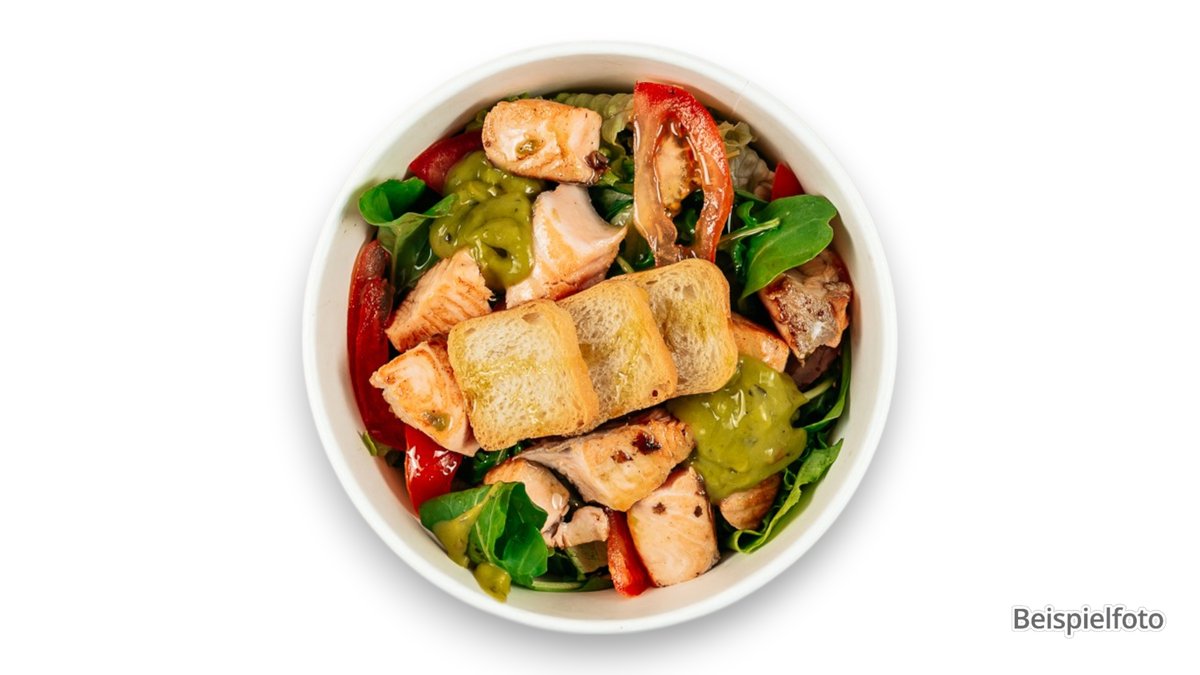 alle Salate werden mit 3 frischen Pizzabrötchen, Kräuterbutter und Dressing deiner Wahl serviert